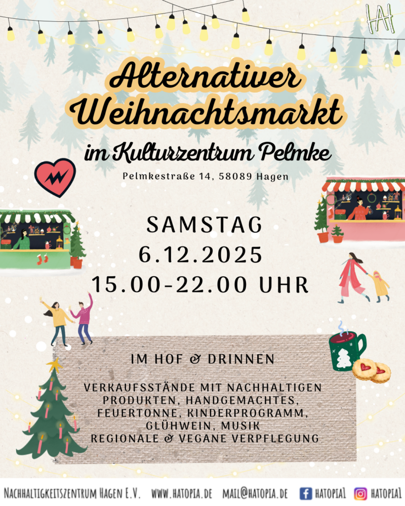 Am Samstag, den 6. Dezember 2025 ist es wieder soweit: unser Alternativer Weihnachtsmarkt öffnet zum 2. Mal im @kulturzentrumpelmke seine Türen für euch!